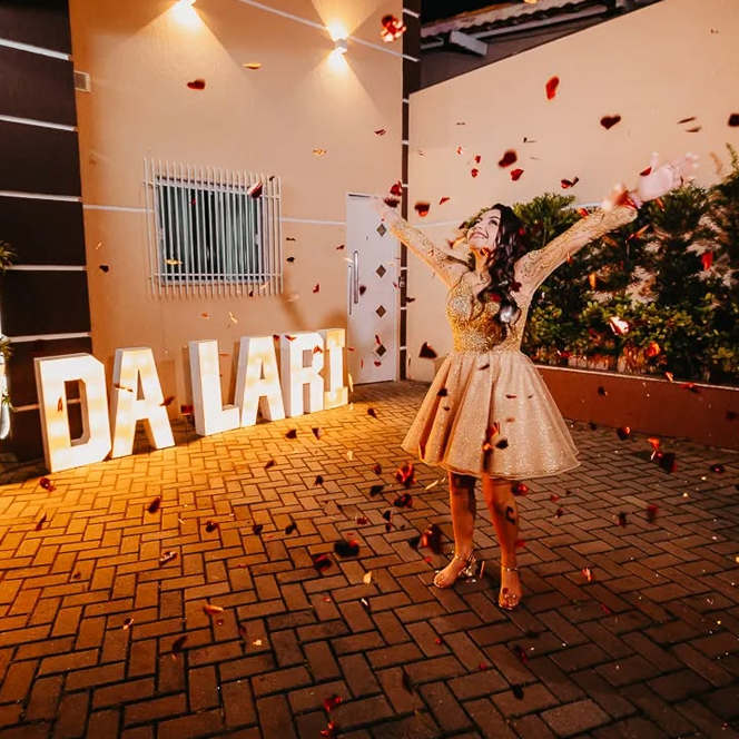 Tudo começou quando criamos um letreiro LOVE para o nosso próprio casamento. Na época, eu estava desempregada e, após o evento, decidi começar a alugar o letreiro para pessoas próximas. O retorno foi imediato — e a paixão por transformar momentos em memórias únicas só cresceu.